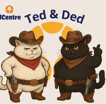 These two chubby cats, Ted and Ded, wanTED more than just food — they neeDED attention. They deciDED to get it no matter what so they visiTED every saloon in town, where they waiTED for lonely hearts. They painTED mustaches on posters, attenDED dance nights, and enDED up famous.